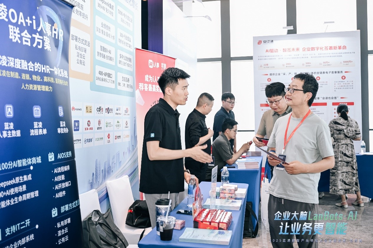 5月29日,【企业大脑LanBots·AI让业务更智能】2025蓝凌数智产品体验大会全国巡展登陆“工业重镇”苏州。大会当天,蓝凌携手i人事等生态伙伴,与各位制造业企业代表共同探讨AI驱动产线升级新路径。蓝凌发布了重磅新品——5大AI解决方案,助力企业打造AI大模型时代的数智化办公方式,共同见证人工智能如何赋能千行百业,开启数智化变革新篇章!