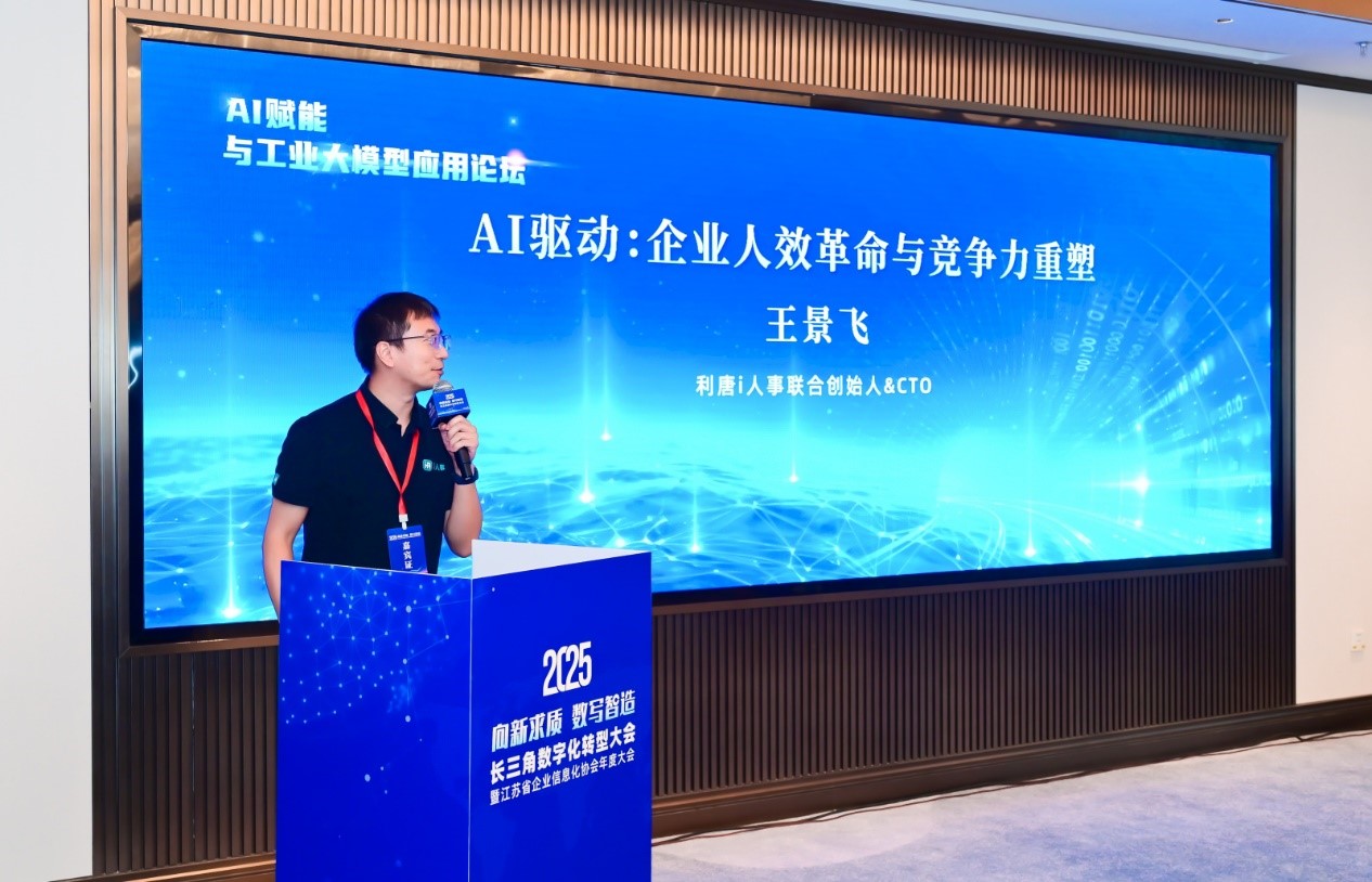 9月25日-26日,由江苏省企业信息化协会的“向新求质 数写智造 ”长三角数字化转型大会在南京隆重召开。来自三省一市企业信息化负责人、CIO、行业专家超500名嘉宾共聚金陵,共话企业数智新发展。作为国内首批实现“双引擎AI驱动”的HR管理智能平台的HR数智化服务商,利唐i人事出席此次盛会,联合创始人兼CTO王景飞受邀于【AI赋能与工业大模型应用】主题论坛做相关专题分享。