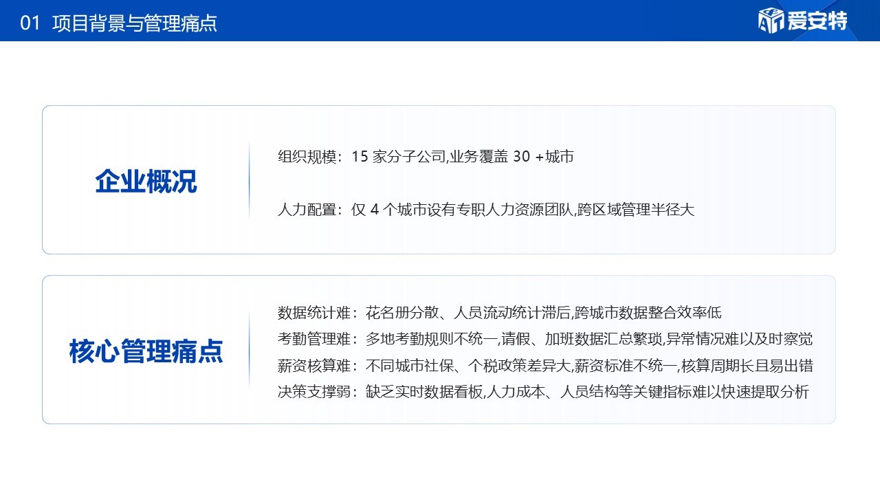 在企业的快速发展中,爱安特的人力资源管理面临典型的数据孤岛与决策困境。管理层往往依赖“拍脑袋”式的经验决策,无法精准洞察团队的真实状况。例如,一个部门看似年终人数未变,但其背后“流入99人、流出99人”的高流动性隐患却被完全掩盖。各类人力资源数据分散,难以整合分析,更无法快速响应像生日会人员统计等具体管理需求,整体管理效率与精细化程度有待提升。
